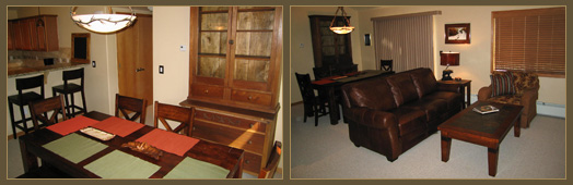 2 Bedroom/2 Bathroom Upstairs Condo Unit Our cozy, 1,149 square foot home is immaculately furnished. There is room to sleep 7, one king-size bed, bunk beds and full bed. Plus a queen sofa bed in the living room.